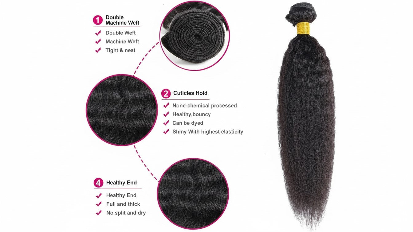 Achieve a flawless, natural look with Brazilian Kinky Straight Remy Hair Bundle—premium quality you can see and feel. Add to cart today.