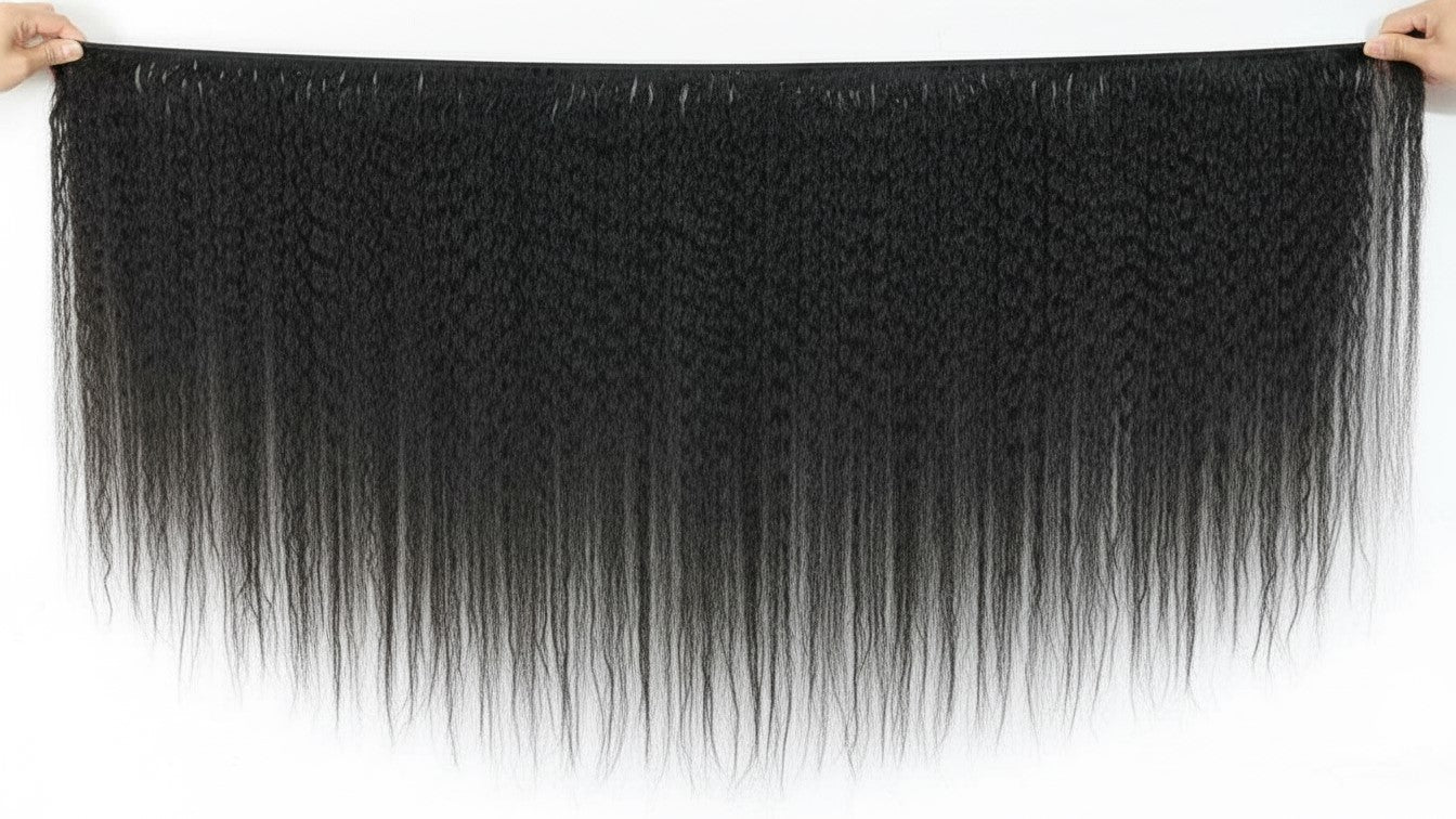 Brazilian Kinky Straight Remy Hair Bundle is made from high-quality Remy human hair, designed to mimic natural textured hair while maintaining softness and strength. It blends seamlessly, holds style beautifully, and delivers full, natural-looking volume.